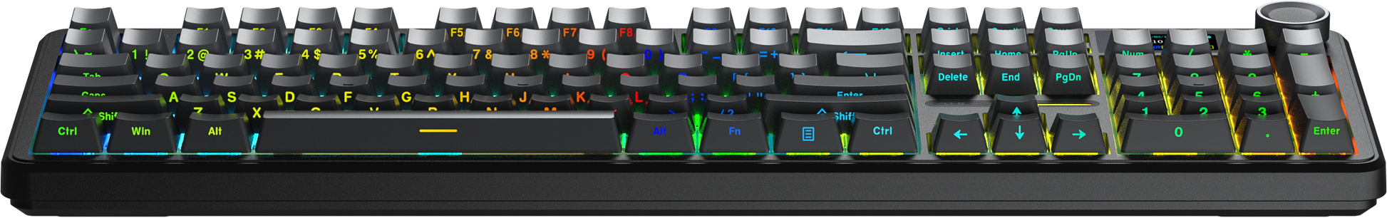 At the heart of the F108 Pro is its intelligent color TFT screen, serving as an interactive command hub for real-time updates and customization. Instantly view or modify GIF animations, volume, time, date, battery level, RGB modes, and connection status. The multi-function control knob provides seamless access to lighting, volume, and mode adjustments without interrupting your workflow or gameplay.